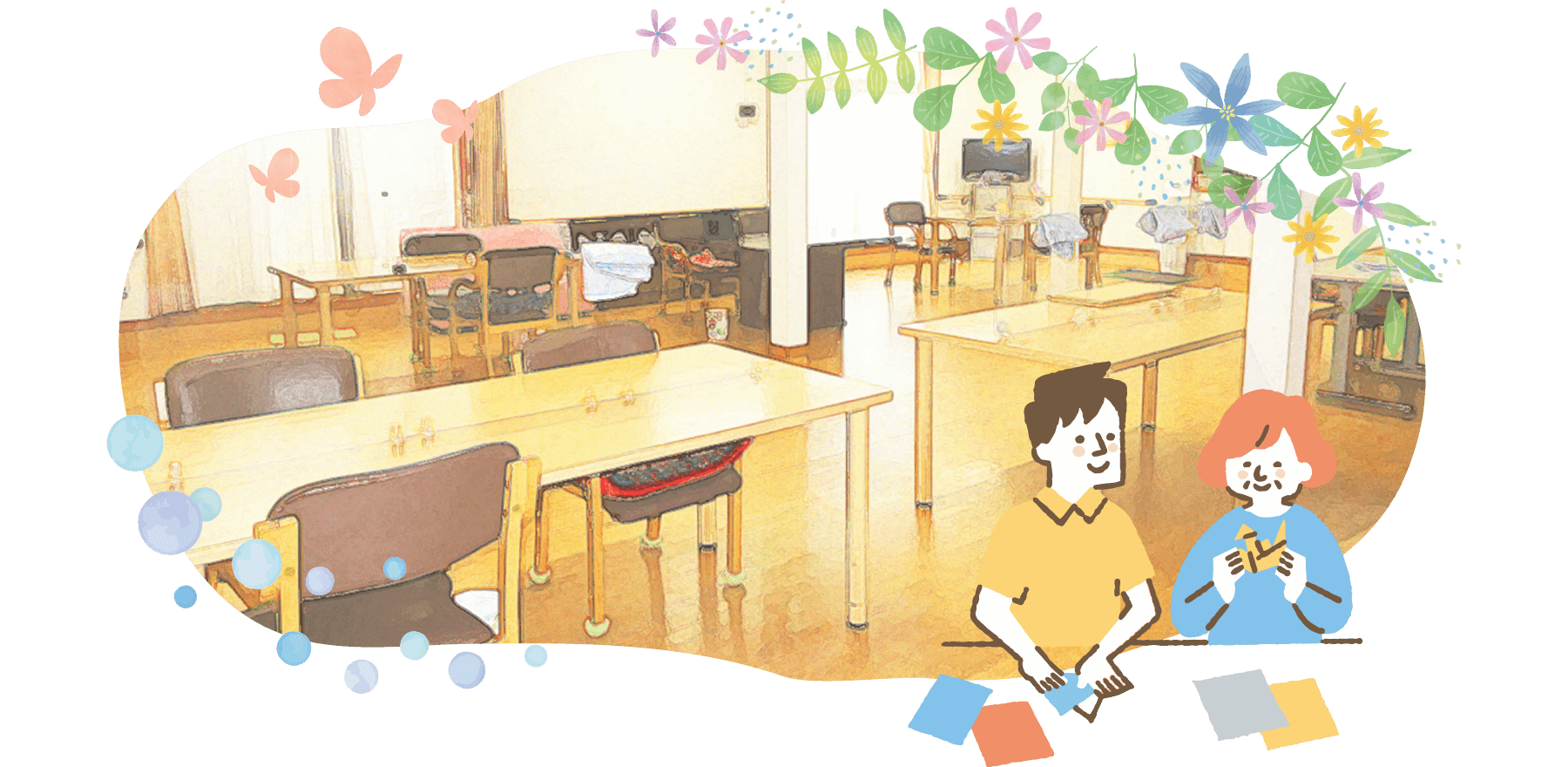 利用者様の尊厳を第一に尊重し、ご本人様が希望されるサービスを提供しながら集団で過ごす中でお友達作りの架け橋となり、生活に楽しみ・生きがいが持てるよう支援しています。